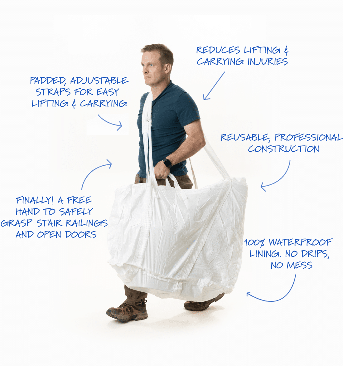 Heavy-duty Polypropylene carry-all bag is rated for 250lb for debris. Carry alone or with a partner to take the aches and pains out of heavy debris removal. Adjustable to anyone's height simpy by twisting the padded straps shoulder downwards to shorten its length.