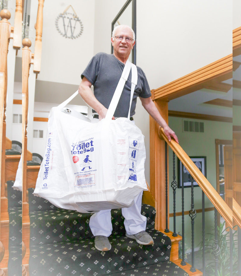 The reusable Toilet Transporter makes it possible for one or two people to safely lift, carry, store, service or dispose of a fully assembled toilet in minutes!