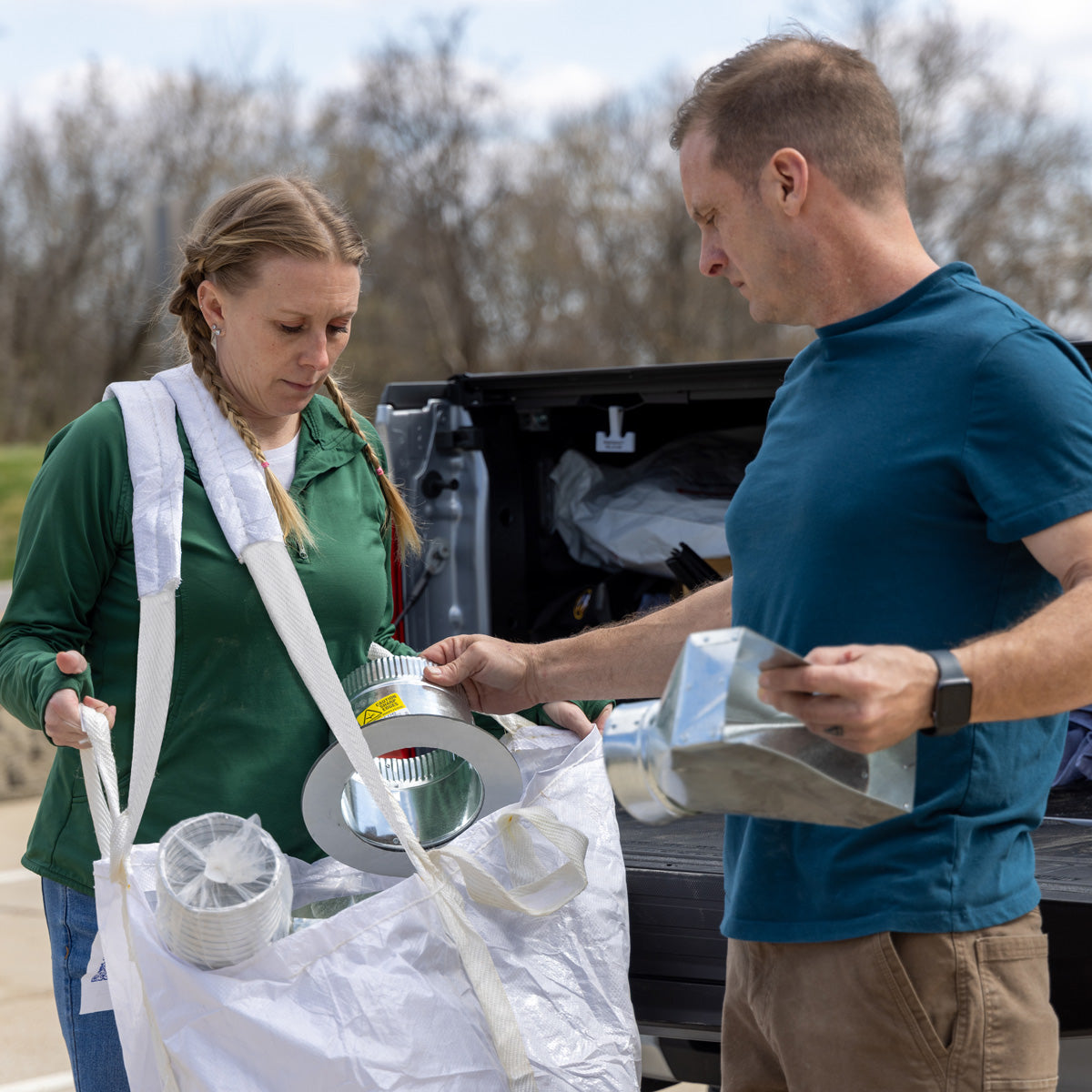 Reusable 250lb-rated Polypropylene carry-all bag with 4mm waterproof liner saves trips and your back when carrying tools and parts into and out of job sites.