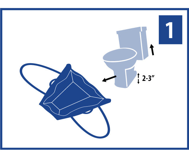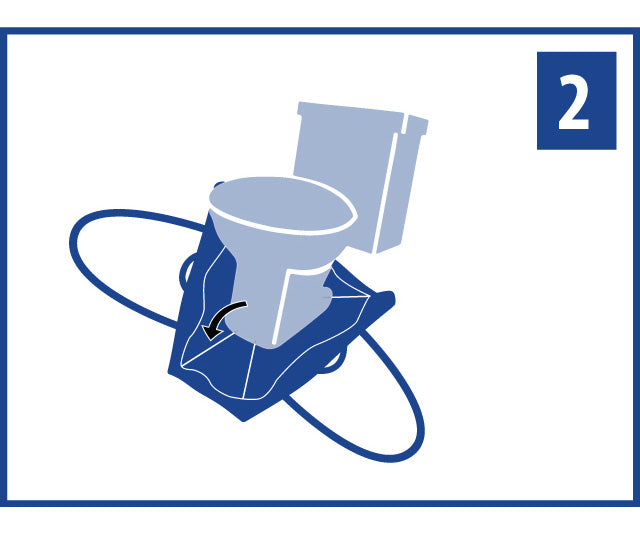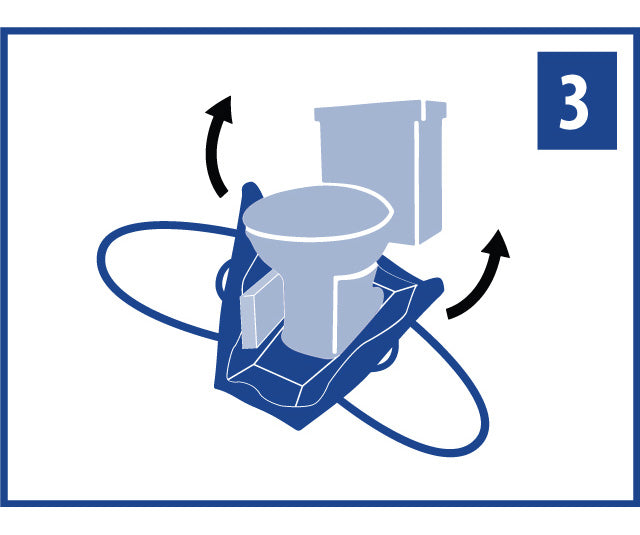 Carefully lift the toilet, keeping it level, and place it into the center of the oval opening of the bag.