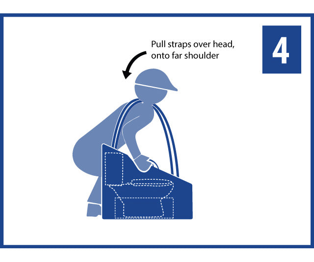 While squatting at the knees, place the two lifting straps over your head and onto your far shoulder.